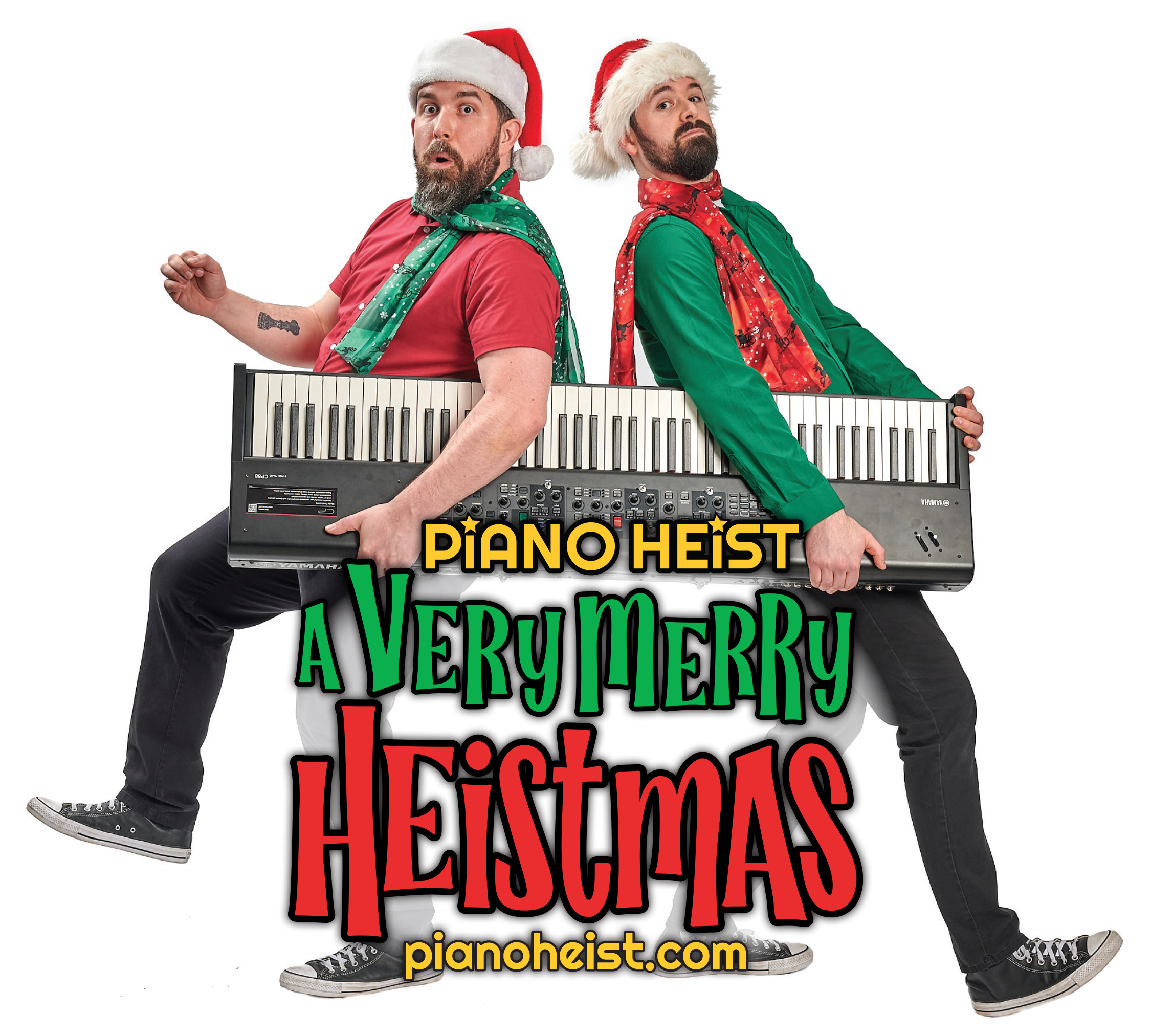 Piano Heist is back with a dazzling new holiday production: A Very Merry Heistmas! A festive romp through Christmas classics interlaced with their own brand of musical and comedic shenanigans, Nico Rhodes & Patrick Courtin tackle everything “Christmas”. Whether it’s the nostalgic charm of Charlie Brown Christmas, a rock & roll styled Nutcracker Suite; The Messiah on melodicas, or a rollicking ragtime Rudolph the Red Nose Reindeer, get ready for a holiday experience that’s truly one-of-a-kind! Bring your festive spirit and prepare to sing-a-long for A Very Merry Heistmas!